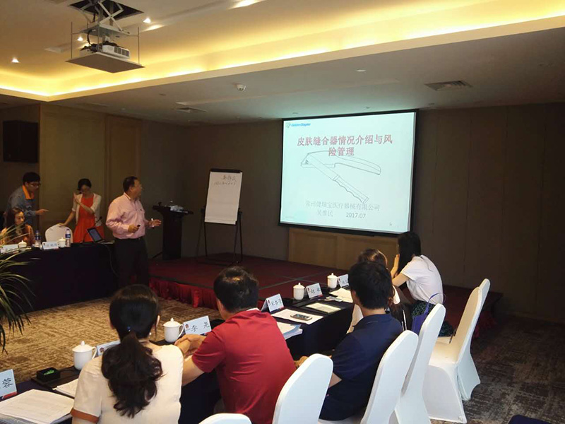 2017年7月13日受江苏省药品不良反应监测中心邀请,我公司研发副总吴惟民先生赴泰州医药城,为参加江苏省贯彻国家食品药品监督管理总局《关于开展“十三五”期间医疗器械不良事件重点检查工作的通知》会议的监管人员,进行皮肤缝合器在研发和生产环节的产品风险培训。根据国家总局的要求,江苏省将在“十三五”期间对皮肤缝合器进行重点监测。参加此次会议的主要有江苏省局医疗器械处、省不良反应监测中心、江苏13个地级市不良反应监测中心等单位的领导和监管人员约30余人。会后大家对吴总的培训给予了高度的评价,认为吴总的培训通俗易懂,让他们了解产品的原理及风险源,为今后的不良反应监测指明了方向。