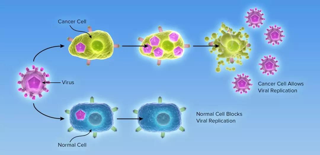 这种病毒,除了直接杀灭肿瘤细胞之外,还有一个重要的特点,能够刺激免疫系统,让免疫细胞在全身寻找并杀灭肿瘤细胞。